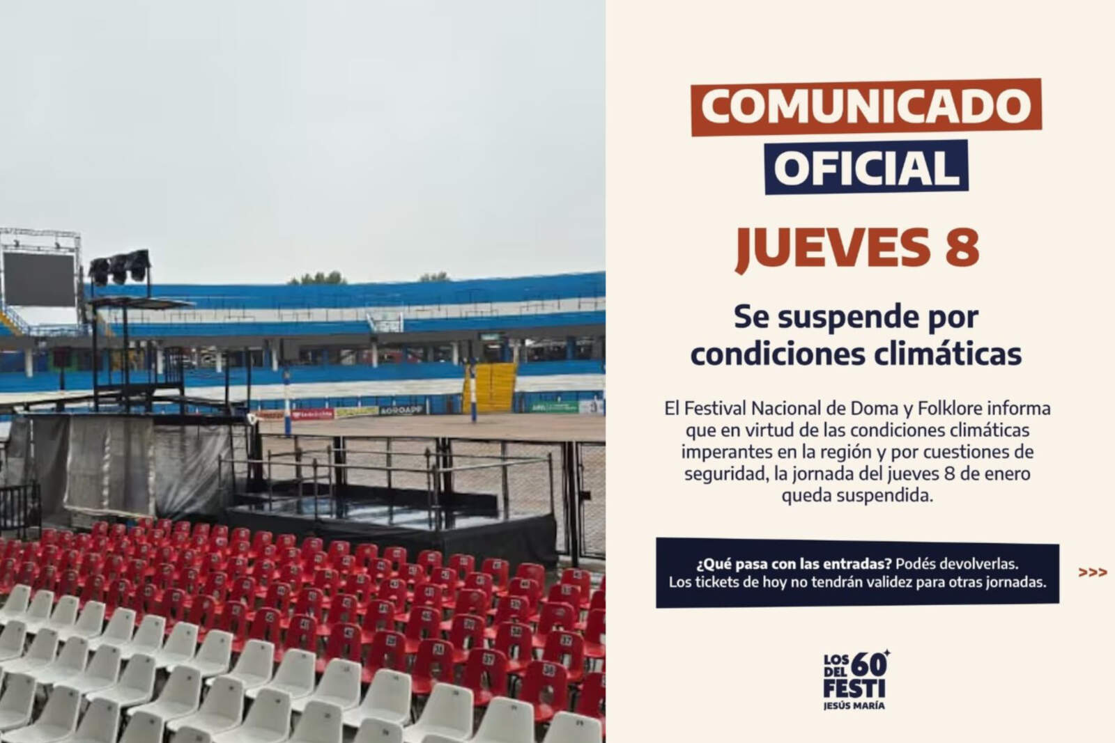 La organización priorizó la seguridad y trasladó el acto oficial al viernes 9. Cómo tramitar la devolución del dinero.