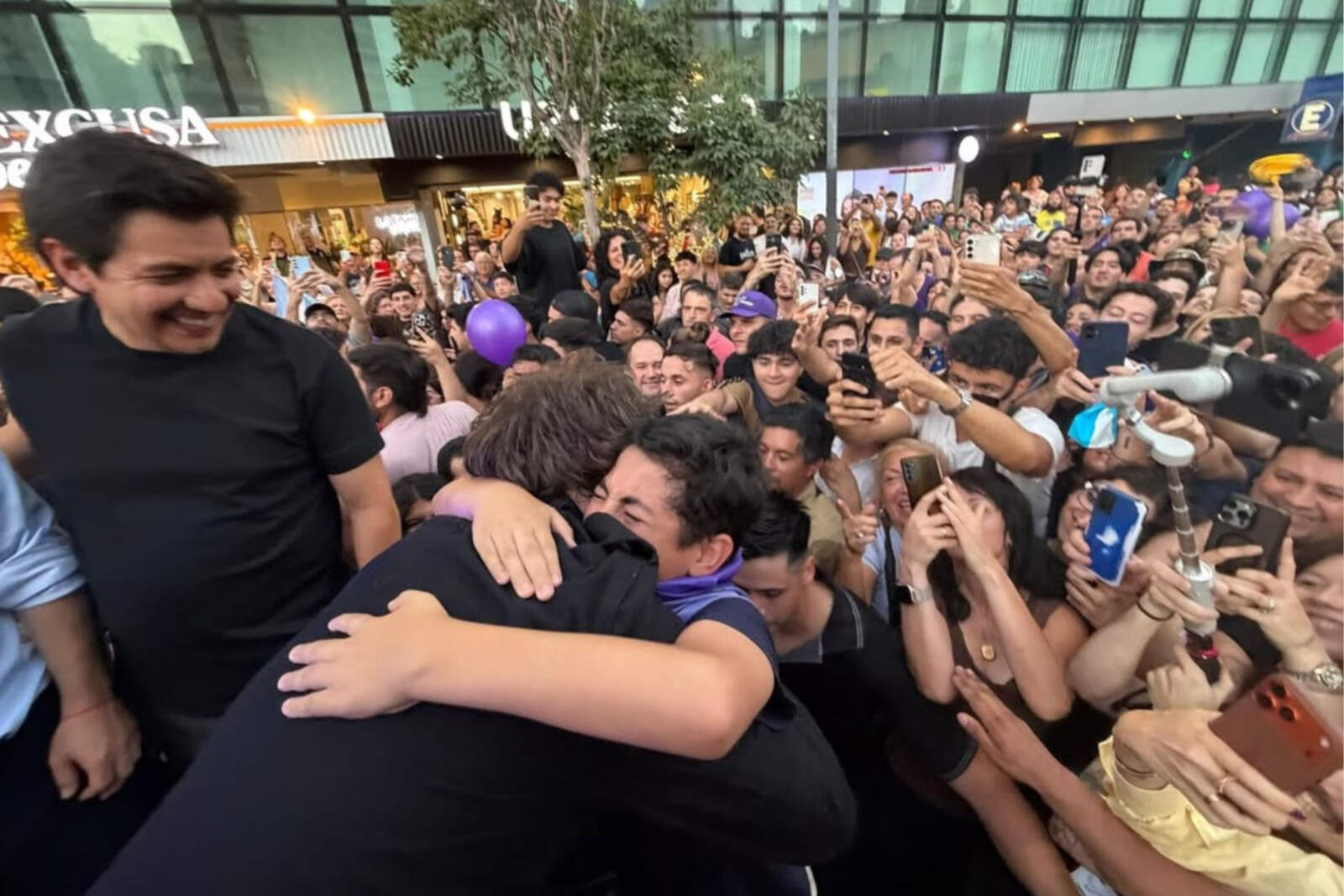 Javier Milei se fundió en un abrazo con un joven seguidor visiblemente emocionado, demostrando que la conexión con las nuevas generaciones se mantiene intacta.