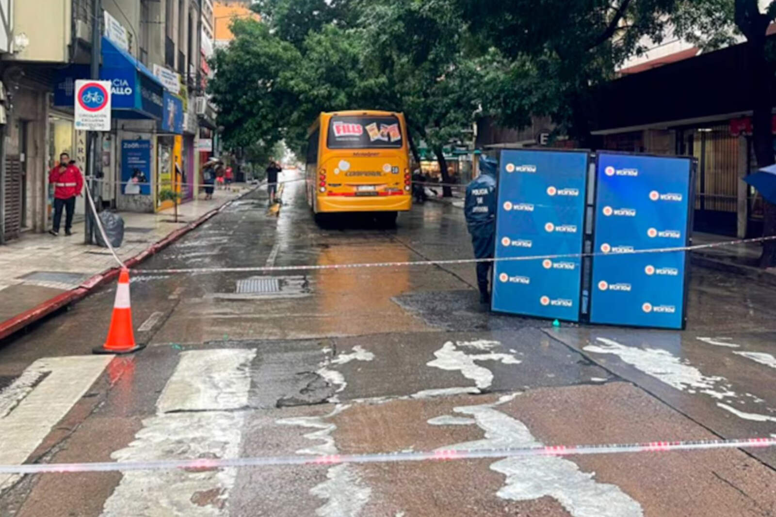 The justice system is investigating the death of a 27-year-old woman who was run over by a bus belonging to Coniferal this Thursday. The traffic accident occurred around 14:30 at the intersection of 27 de Abril and Vélez Sársfield under very heavy rain. Agustina Pagliero died instantly after she was struck by a line 30 unit that was turning at that downtown corner.
