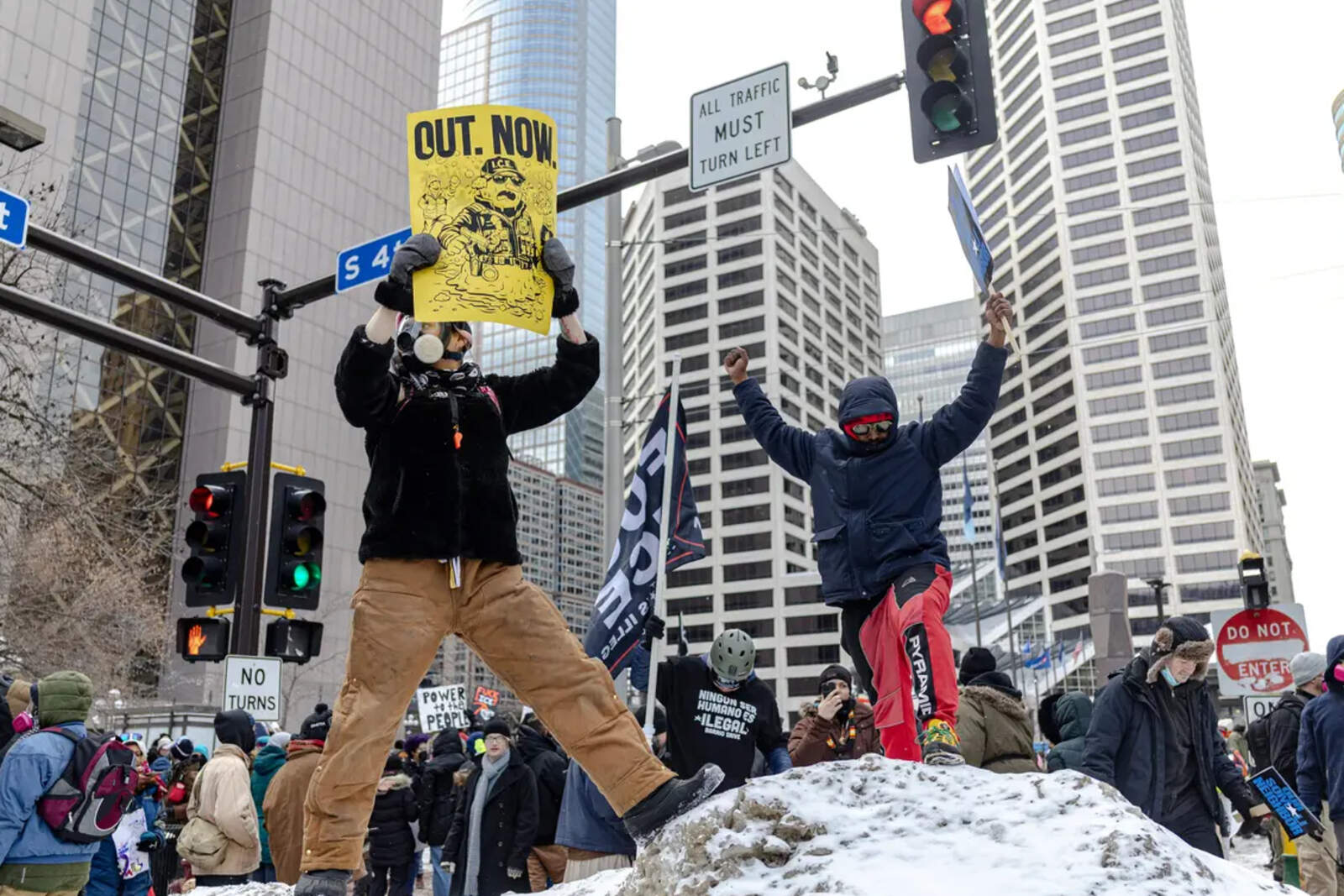The event also served for left-wing activists to protest the death of Renee Good, who was fatally shot by an ICE agent in Minneapolis after trying to ram him with her car last week.